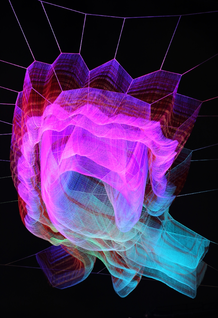 I really like the physical connection when I can. My team is all over the world, my lead engineer is based in Seattle, our lighting designer is in New York. It is always a team; we do a lot of video conferencing; we share our video screens – it is a different kind of being together." Echelman said. Just like her work: The ethereal weavings are anchored in place, yet are never the same in any given moment, constantly changing and evolving in their physical environments, day to night and moment to moment.